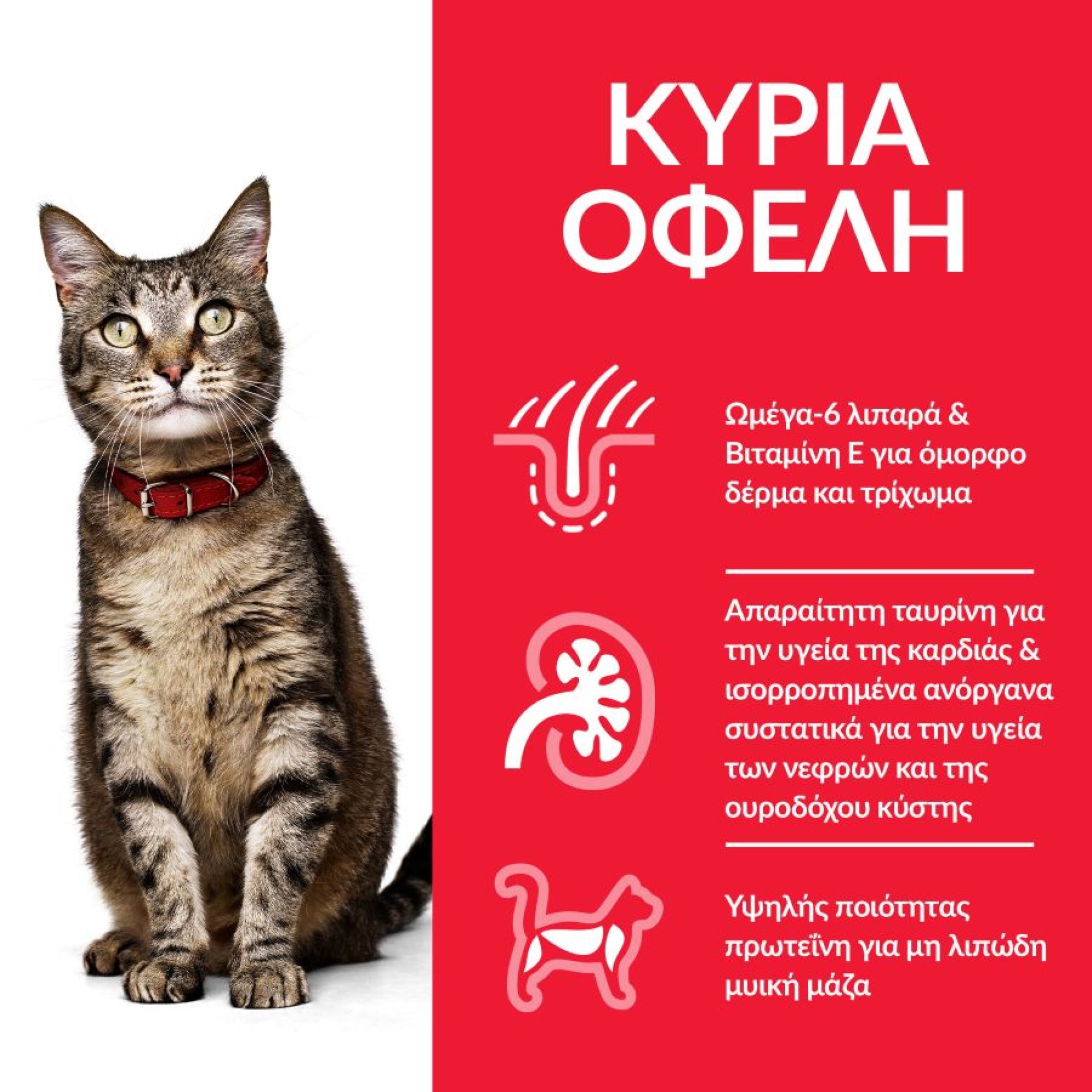 Διατροφή με υπέροχη γεύση για μεγάλης διάρκειας, ευτυχισμένη ζωή. Με απαλά γουργουρίσματα και ακόμη απαλότερα τριψίματα της μουσούδας της, η γάτα σας και σεις έχετε τον δικό σας, αποκλειστικό κώδικα επικοινωνίας. Επειδή κάθε στιγμή που περνάτε μαζί είναι ξεχωριστή, εμείς πασχίζουμε για να σας προσφέρουμε περισσότερες τέτοιες στιγμές. Με υψηλής ποιότητας συστατικά και τις σωστές θρεπτικές ουσίες, η HILL'S SCIENCE PLAN της Hill's παρασκευάζεται με ακρίβεια για να προσφέρει στη γάτα σας τη διατροφή που χρειάζεται για μακροχρόνια υγεία και ευτυχία. Παρασκευάζουμε την τροφή μας για γάτες με τα υψηλότερης ποιότητας συστατικά. Αυτά τα συστατικά πρέπει να πληρούν τις αυστηρές μας απαιτήσεις αγνότητας και περιεκτικότητας θρεπτικών ουσιών, που ξεπερνούν τα πρότυπα του κλάδου.Μπορείτε να συμβάλετε και σεις για να βελτιωθεί η ζωή των κατοικιδίων στα καταφύγια ζώων. Με κάθε αγορά HILL'S SCIENCE PLAN βοηθάτε να διατρέφονται πάνω από 100.000 αδέσποτα κατοικίδια, κάθε μέρα, 365 ημέρες το χρόνο.