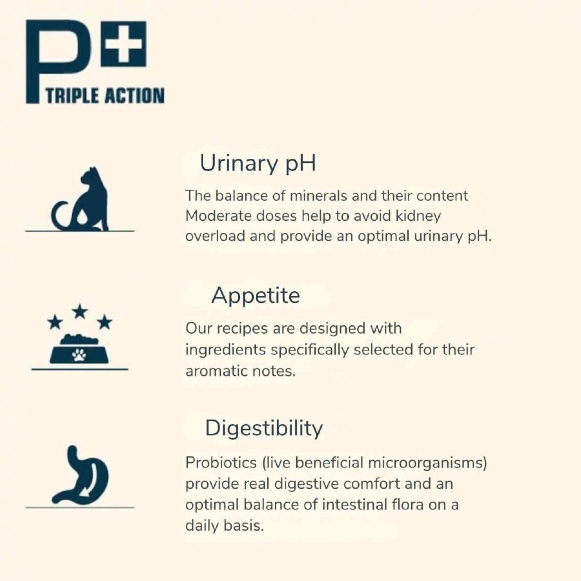 Σύσταση: Αφυδατωμένες ζωικές πρωτεΐνες 20% (πουλερικά 17%, χοιρινό). Καλαμπόκι. Σιτάρι. Γλουτένη καλαμποκιού. Λίπος πουλερικών. Αρακάς (4%). Ρύζι. Πολτός τεύτλων. Υδρολυμένες ζωικές πρωτεΐνες. Συμπύκνωμα πρωτεϊνών μηδικής. Λιναρόσπορος. Μαγιά ζυθοποιίας. Ίνες μήλων (0,6%). Θαλασσινό αλάτι. Ίνες από κουκιά. Ανθρακικό ασβέστιο. Προϊόντα αυτόλυσης ιχθύων (0,4%). Αφυδατωμένα καρότα (0,1%). Χλωριούχο κάλιο. Φρουκτο-ολιγοσακχαρίτες. Θειικό ασβέστιο. Γιούκα. Προβιοτικά (Enterococcus faecium 4b1707). Βιταμίνες και ιχνοστοιχεία.