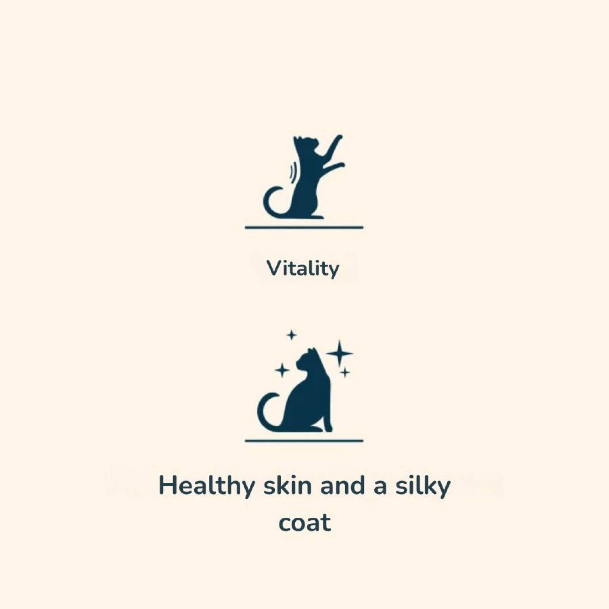 Υγιές δέρμα και μεταξένιο τρίχωμα χάρη στη σύνθεση με βιοτίνη και ψευδάργυρο, αλλά και στη βέλτιστη πρόσληψη ωμέγα-6 και ωμέγα-3 απαραίτητων λιπαρών οξέων.