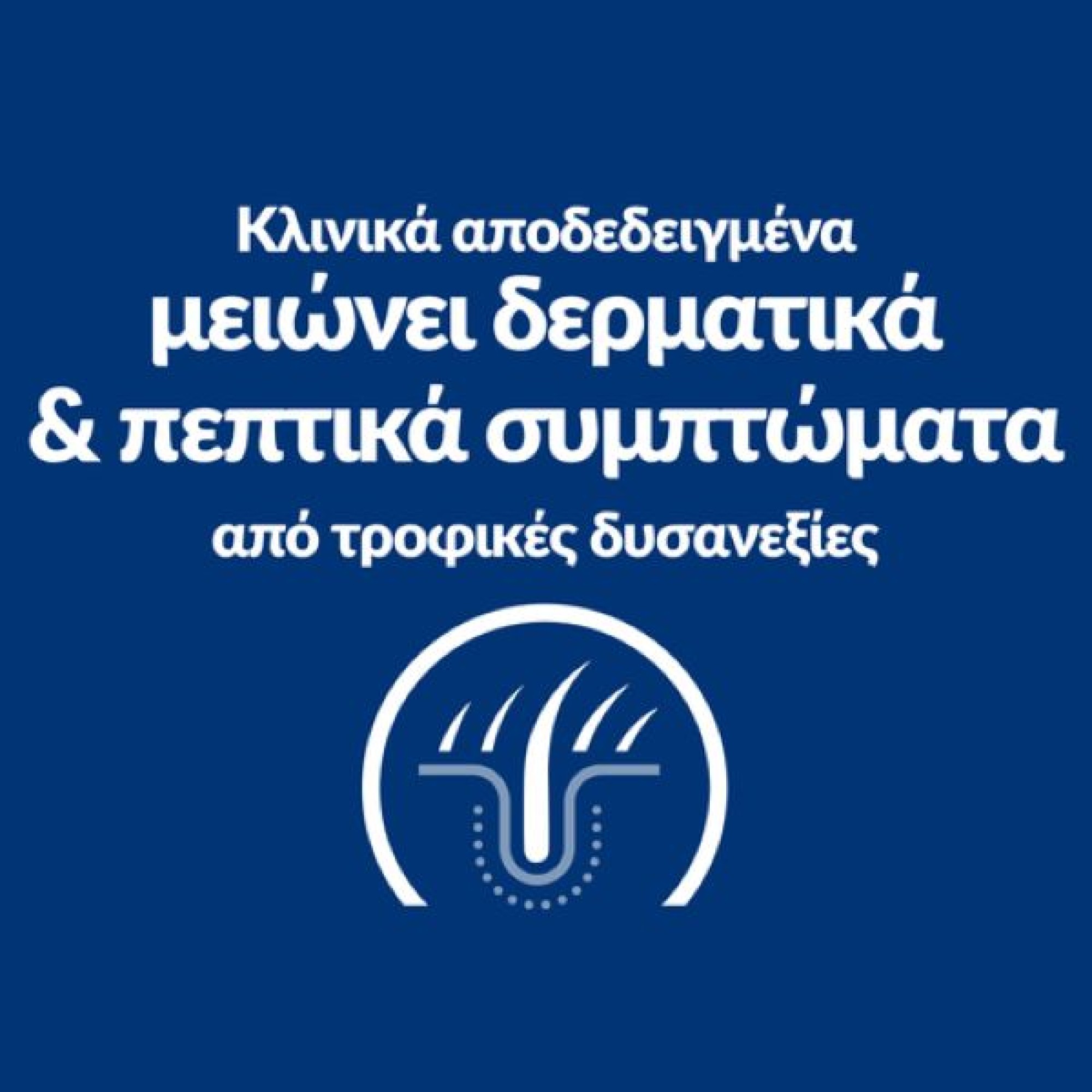Οι ευαισθησίες και η δυσανεξία σε τροφές είναι δυνητικά σοβαρά προβλήματα που μπορούν να έχουν σαν αποτέλεσμα ερεθισμένο δέρμα, προβλήματα στο τρίχωμα και τα αυτιά ή ακόμα και γαστρεντερικές ενοχλήσεις. Οι σκύλοι που έχουν ανεπιθύμητες αντιδράσεις σε τροφές λόγω μιας τροφικής αλλεργίας (τυπικά σε μια πρωτεΐνη μέσα στην τροφή) ή δυσανεξία ωφελούνται από μια τροφή σχεδιασμένη για ευαισθησίες σε τροφές. Οι διατροφολόγοι και οι κτηνίατροι της Hill's ανέπτυξαν την κλινική διατροφή Prescription Diet z/d Mini με μικρότερο μέγεθος κροκετών για να εκπληρώσει την ανάγκη του μικρόσωμου σκύλου σας ή σκύλων που προτιμούν μικρότερες κροκέτες και έχει ειδική σύνθεση για να υποστηρίζει τις ευαισθησίες του σκύλου σας σε τροφές. Μάλιστα, η τροφή z/d είναι διατροφή που έχει αποδειχθεί κλινικά ότι μειώνει τα δερματικά & πεπτικά συμπτώματα από δυσανεξίες σε τροφές.