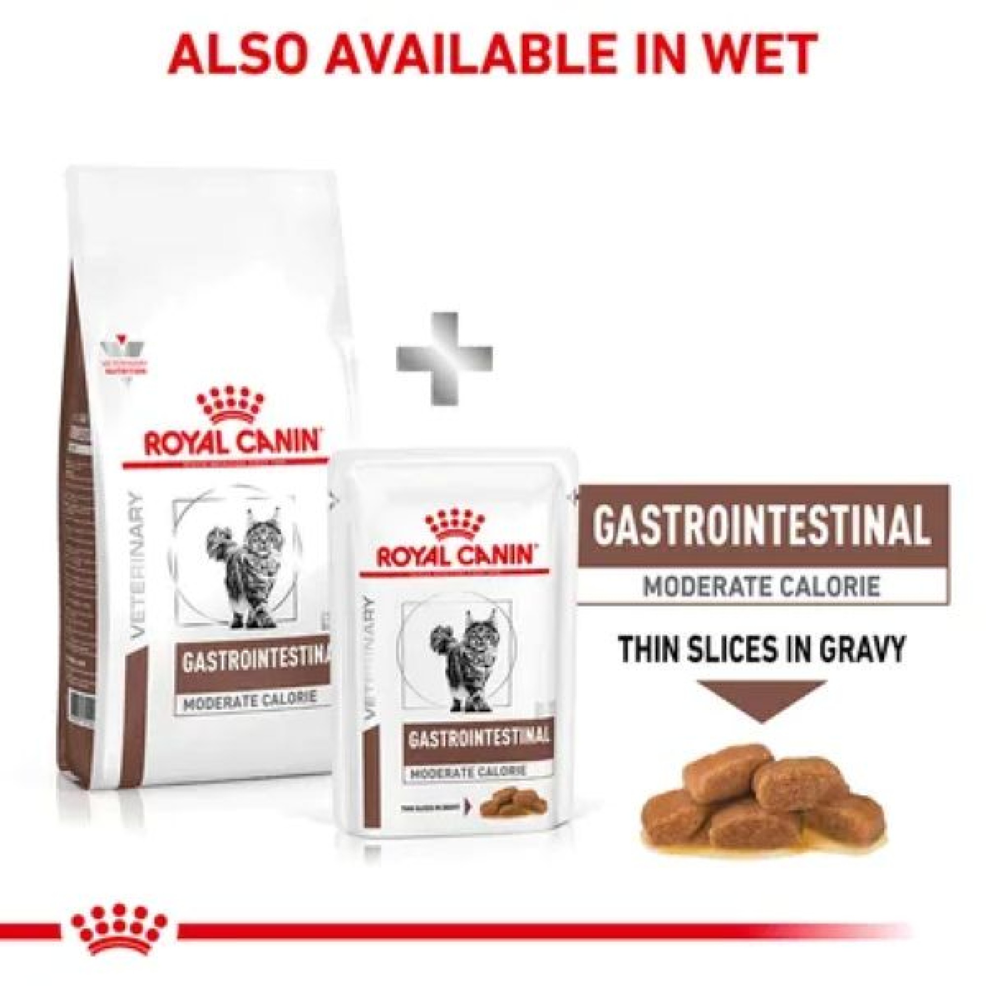Η Royal Canin GastroIntestinal Moderate Calorie αποτελεί μία πλήρης κλινική τροφή με πουλερικά, για την ενήλικη γάτα. Η τροφή αυτή είναι ειδικά σχεδιασμένη ώστε να υποστηρίζει την φυσιολογική λειτουργία του εντέρου. Έχει μέτριο θερμιδικό περιεχόμενο που βοηθά στη διατήρηση του ιδανικού βάρους, είναι εύπεπτη, με ισορροπημένες ίνες, και περιέχει πρεβιοτικά, για την υποστήριξη της υγιούς πέψης και εντερικής λειτουργίας. Επιπλέον είναι εξαιρετικά γευστική ώστε να είναι ελκυστική ακόμα και την πιο μίζερη γάτα.
