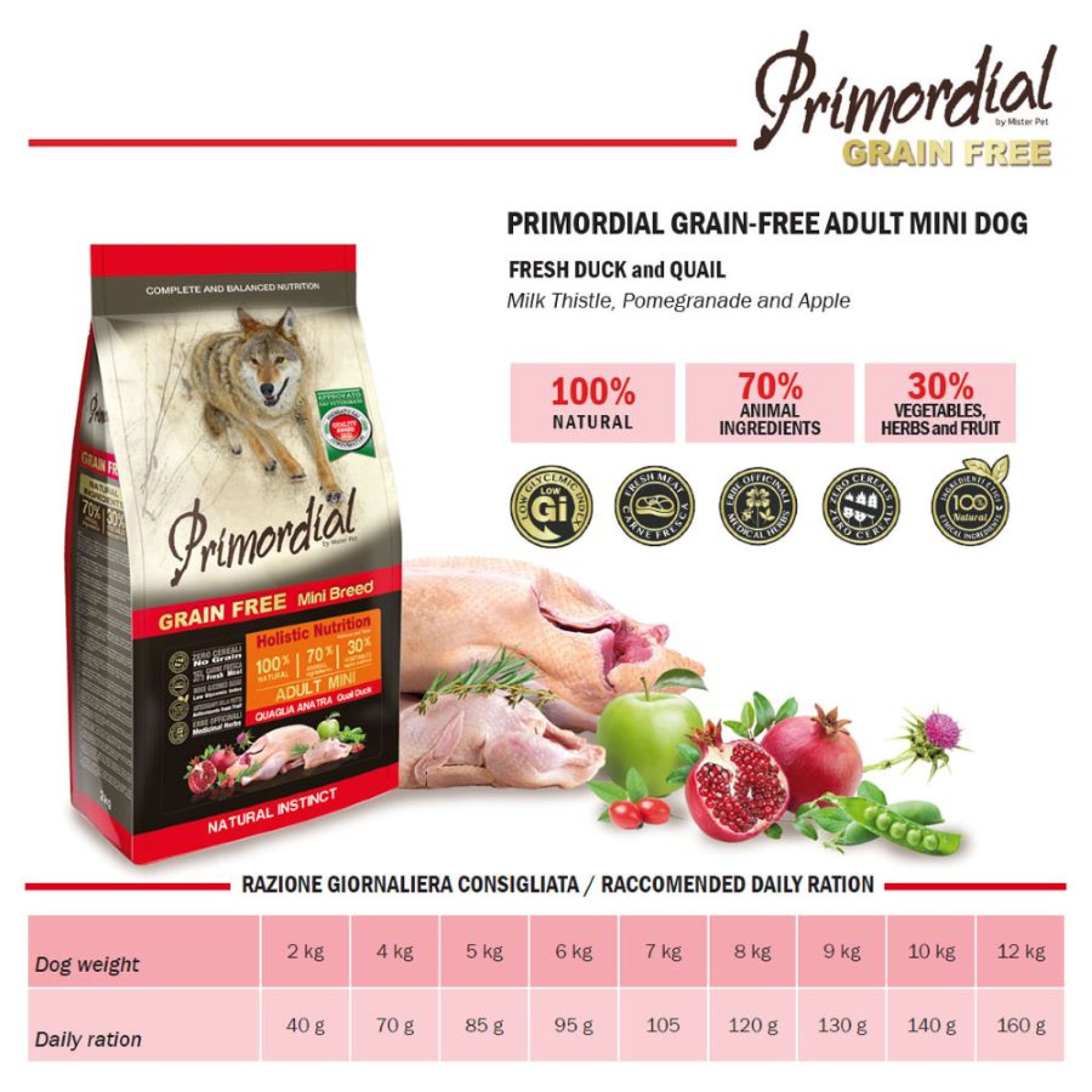 PRIMORDIAL GRAIN FREE HOLLISTIC ADULT DOG MINI BREEDS ΟΡΤΥΚΙ ΠΑΠΙΑ 6Kg