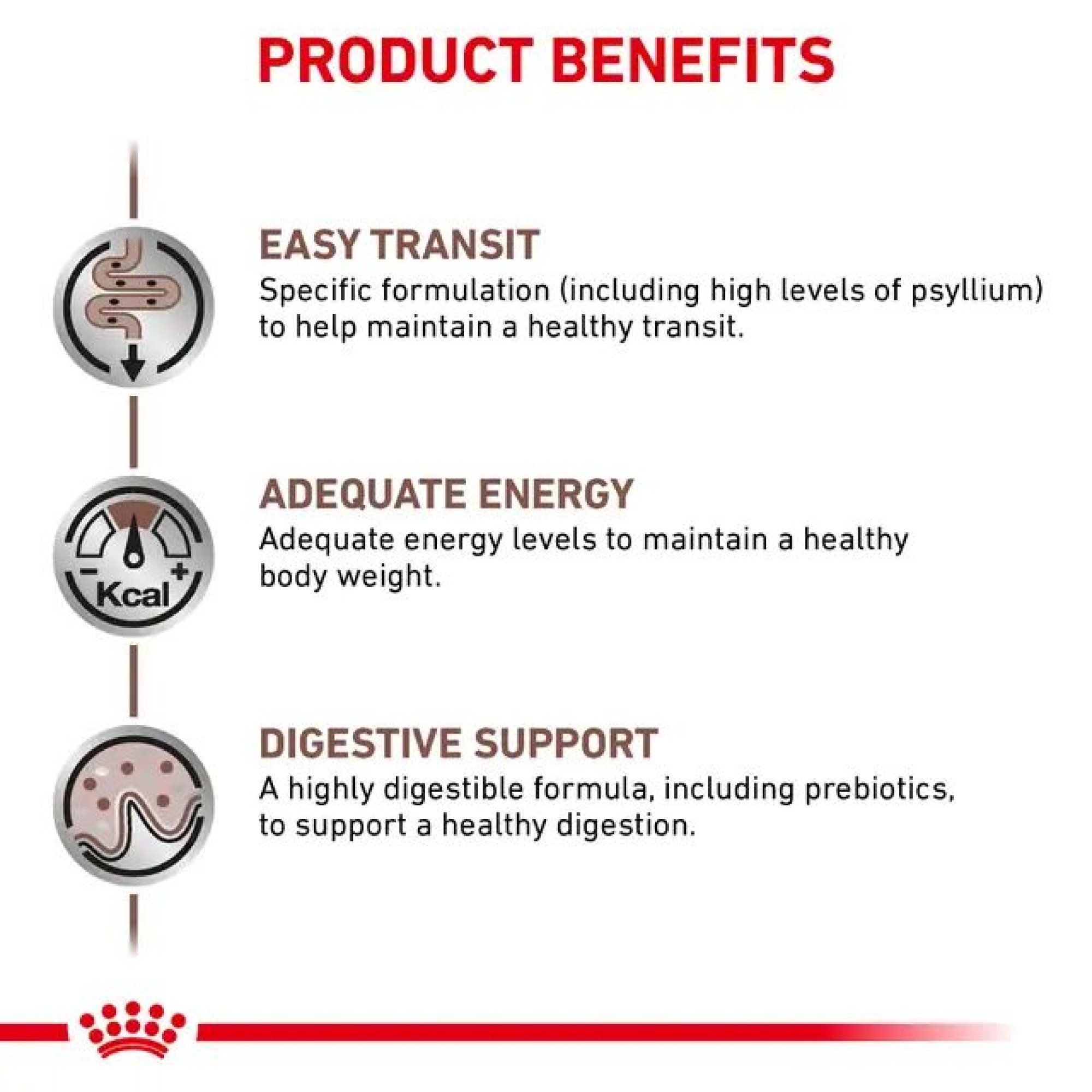 Επιπλέον, η τροφή περιλαμβάνει ένα ισορροπημένο μείγμα αδιάλυτων και διαλυτών φυτικών ινών, συμπεριλαμβανομένων πρεβιοτικών, που υποστηρίζουν την πέψη και ενισχύουν την υγεία της εντερικής χλωρίδας.