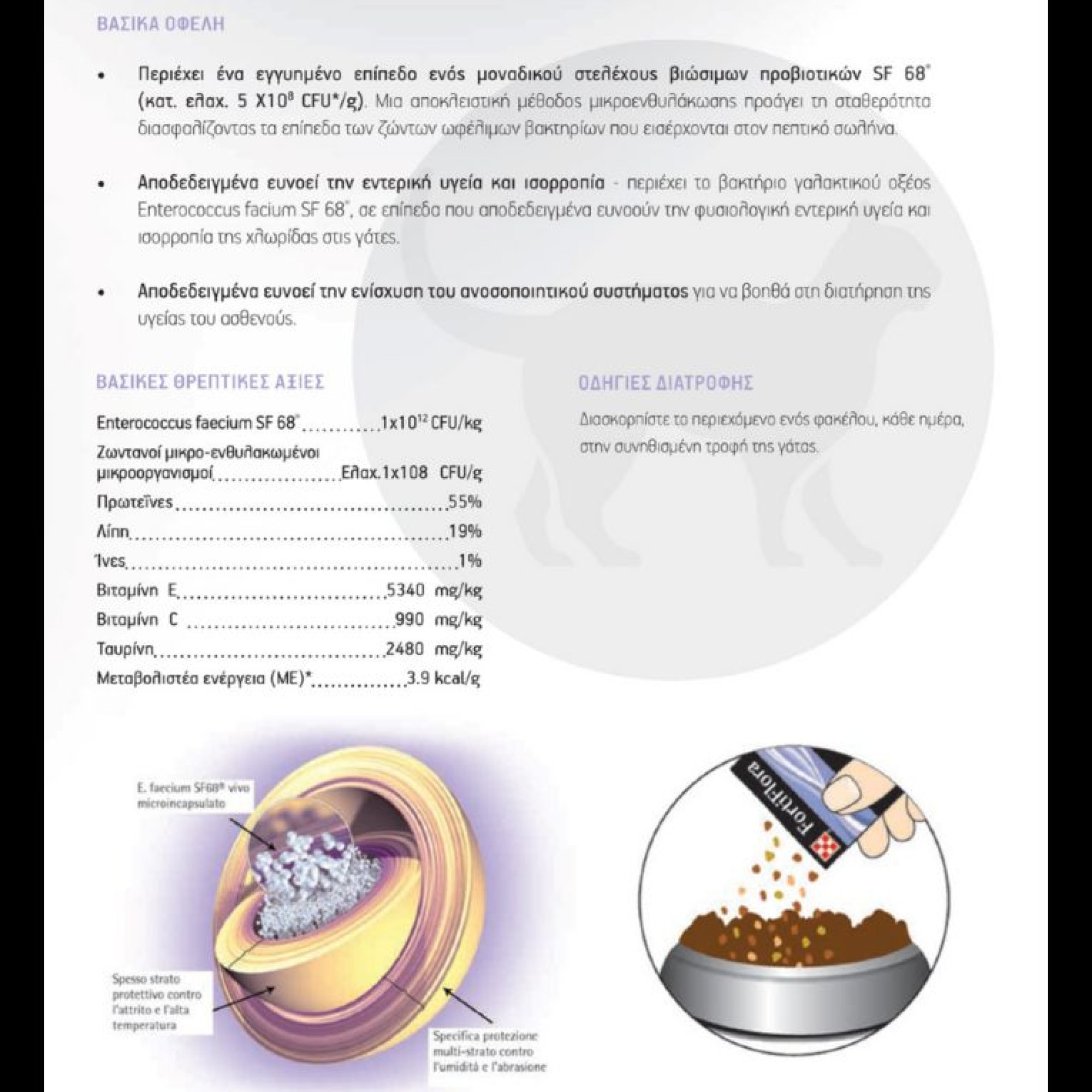 Ζωντανοί μικροενθυλακωμένοι μικροοργανισμοί Ελαχ. 1X 10 8 CFU/g.