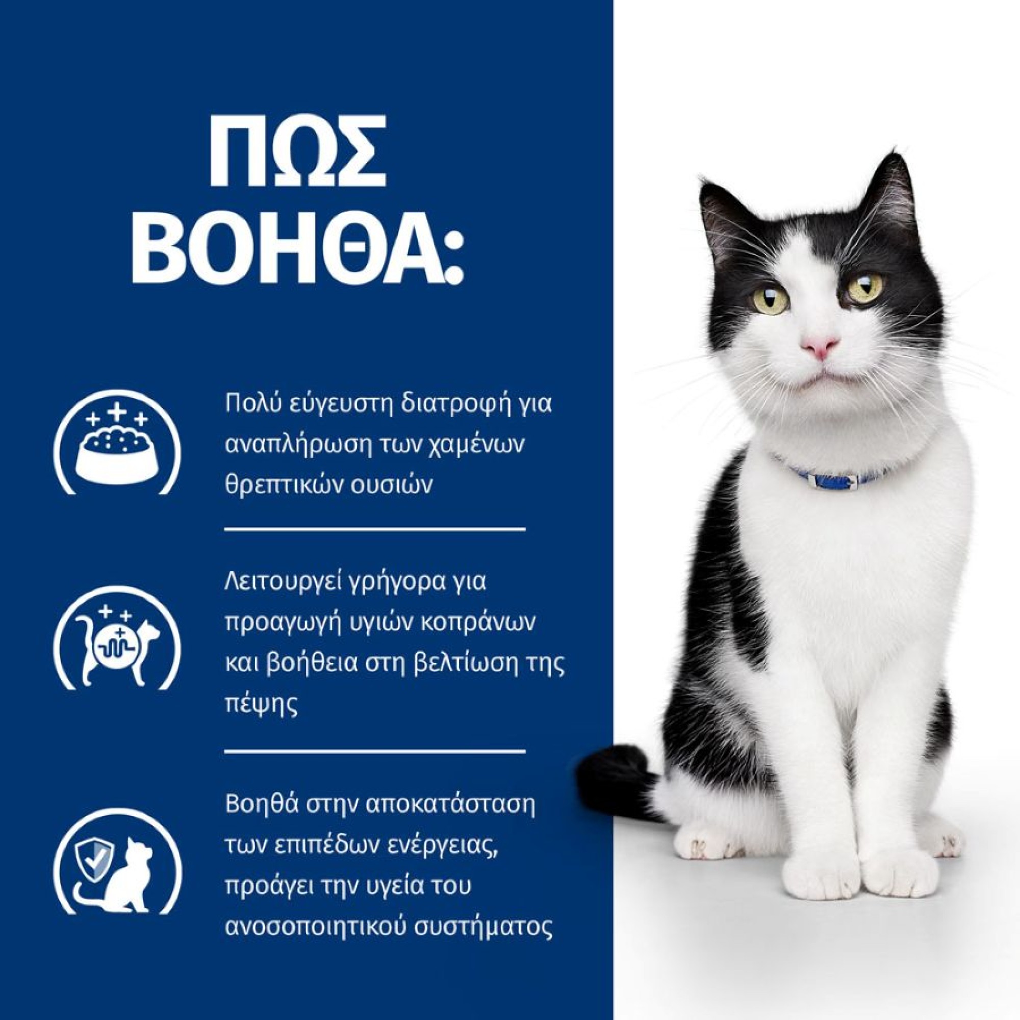 Εκπληρώνει τις ειδικές διατροφικές ανάγκες σε γατάκια και ενήλικες γάτες.