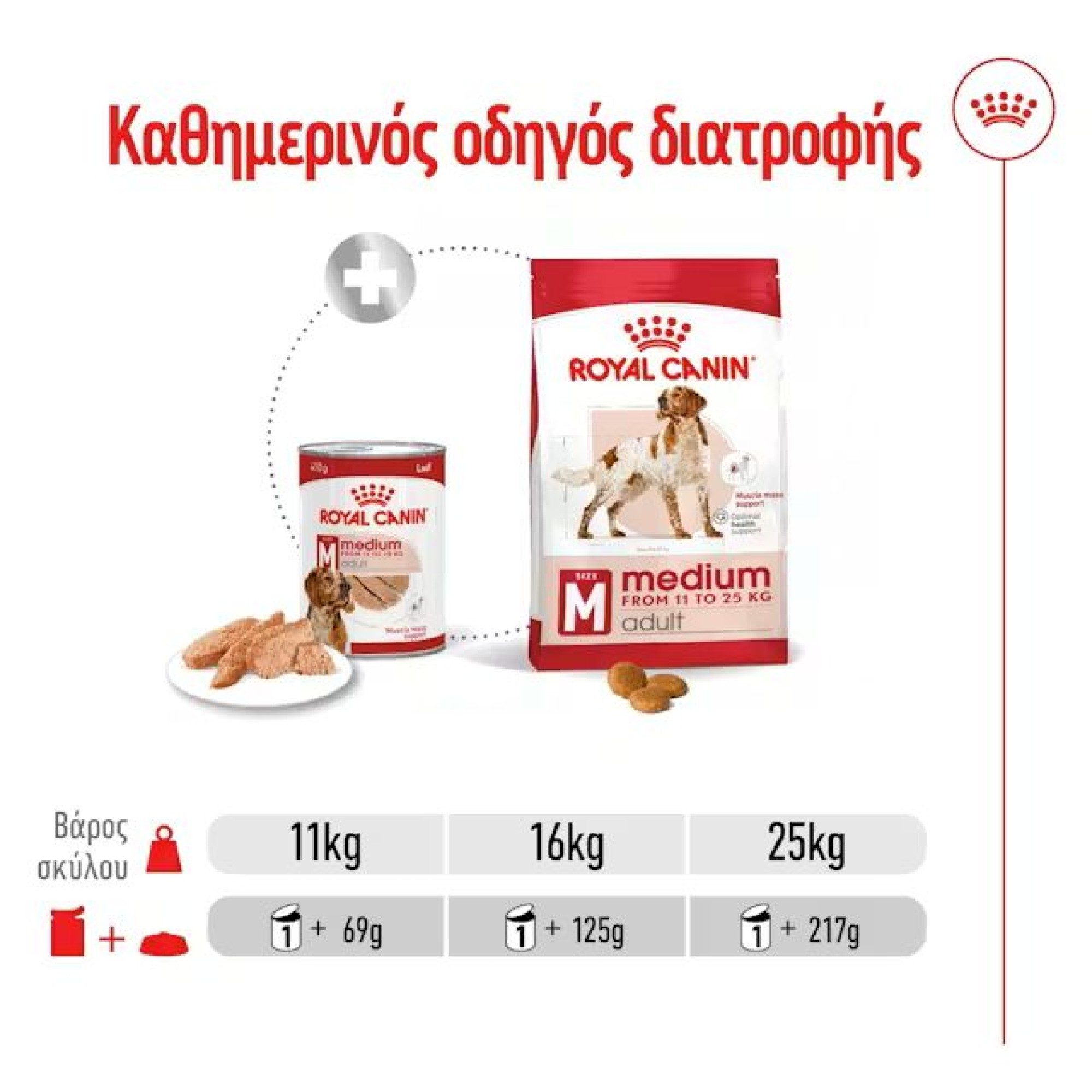 Πλήρης ζωοτροφή για σκύλους- Για ενήλικους σκύλους μεσαίου μεγέθους φυλών (από 11 έως 25 kg) – Άνω των 12 μηνών.