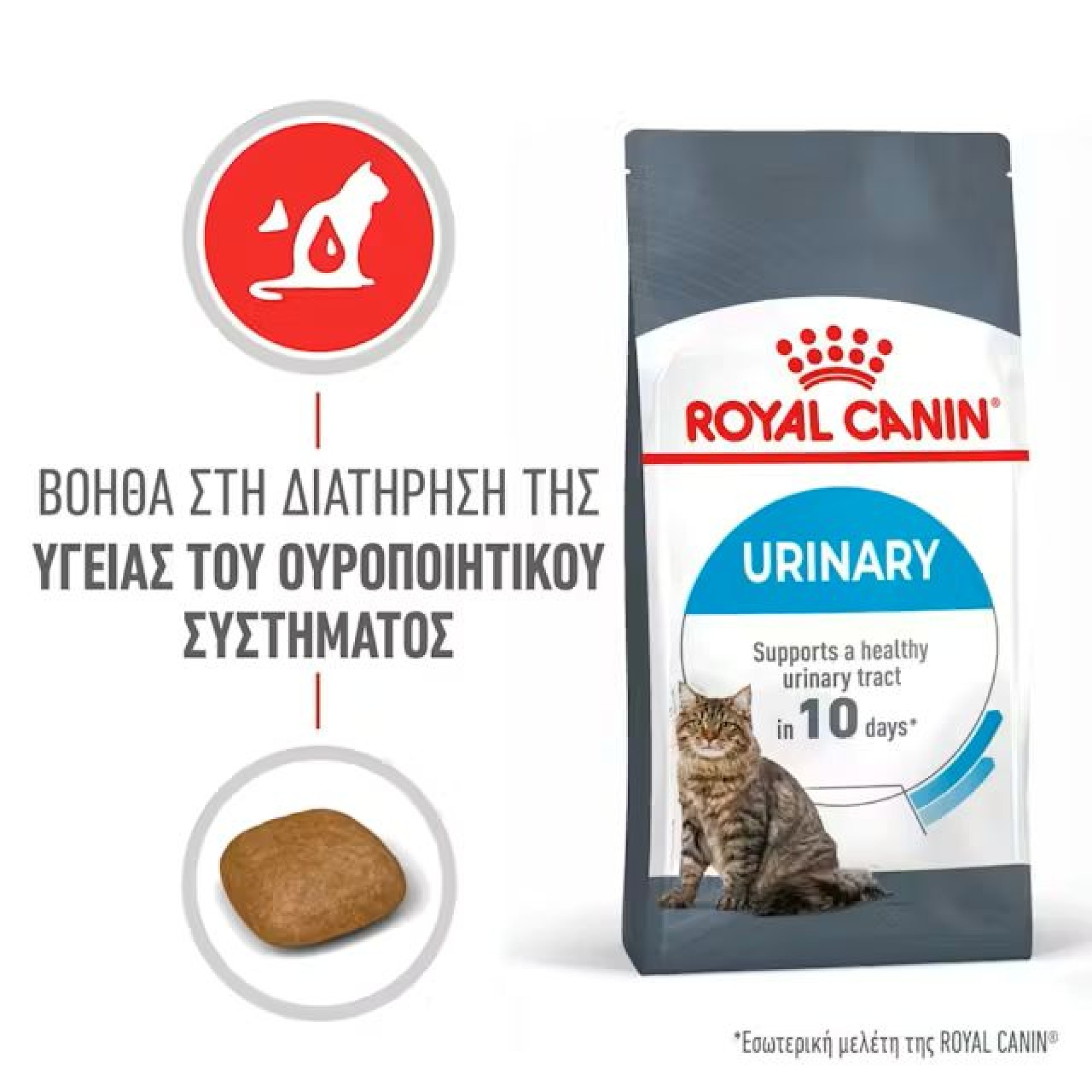 Η ROYAL CANIN® Urinary Care είναι μια νόστιμη και πλήρης θρεπτική δίαιτα που έχει σχεδιαστεί ειδικά για να βοηθά στην υποστήριξη και τη διατήρηση της υγείας του ουροποιητικού συστήματος της γάτας σας. Ρυθμίζοντας την ισορροπία των μετάλλων και διατηρώντας ένα χαμηλό pH στα ούρα, αυτή η ειδικά σχεδιασμένη δίαιτα βοηθά στη μείωση της συγκέντρωσης των ούρων της γάτας σας. Βοηθά στη διατήρηση ενός υγιούς ουροποιητικού συστήματος: Η αποκλειστική φόρμουλα στο ROYAL CANIN® Urinary Care βοηθά στην υποστήριξη ενός υγιούς ουροποιητικού περιβάλλοντος για βέλτιστη υγεία του ουροποιητικού συστήματος. Αποδεδειγμένα αποτελέσματα: Υποστηρίζει ένα υγιές ουροποιητικό σύστημα σε 10 ημέρες, σε υγιείς γάτες που σιτίζονται με ROYAL CANIN® URINARY CARE.