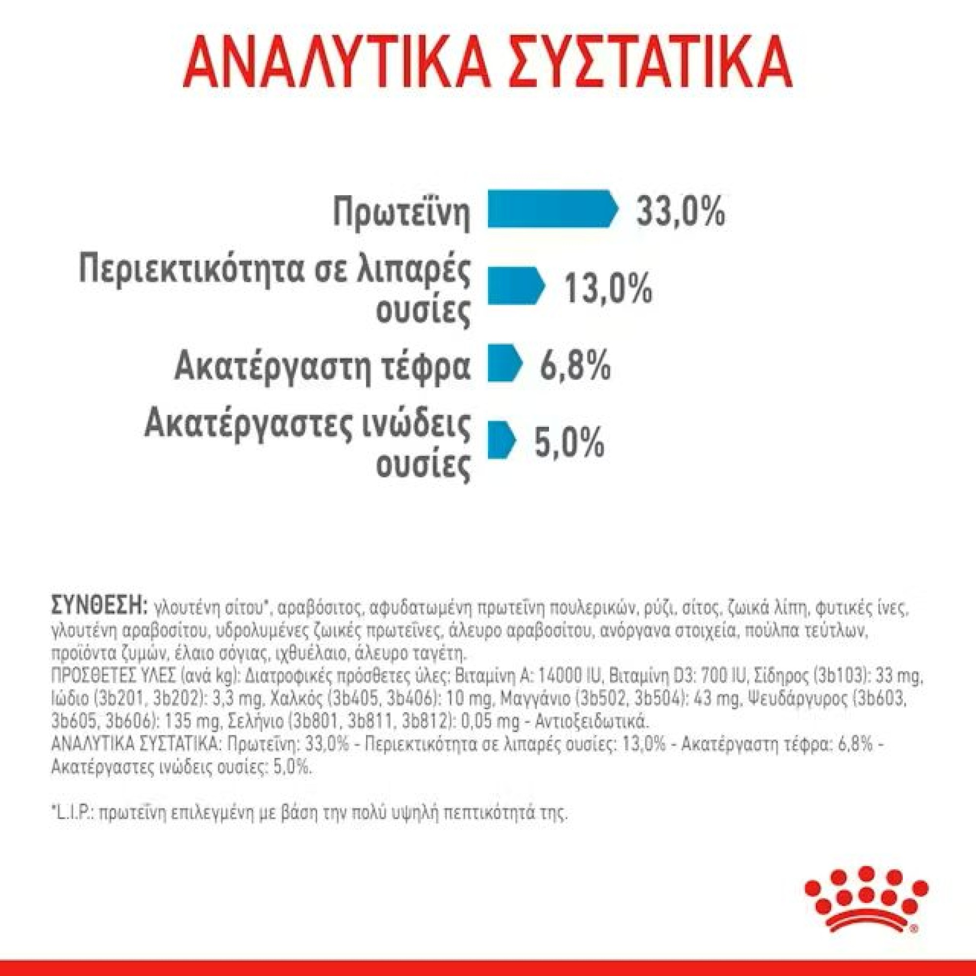 *L.I.P.: πρωτεΐνη επιλεγμένη με βάση την πολύ υψηλή πεπτικότητά της.