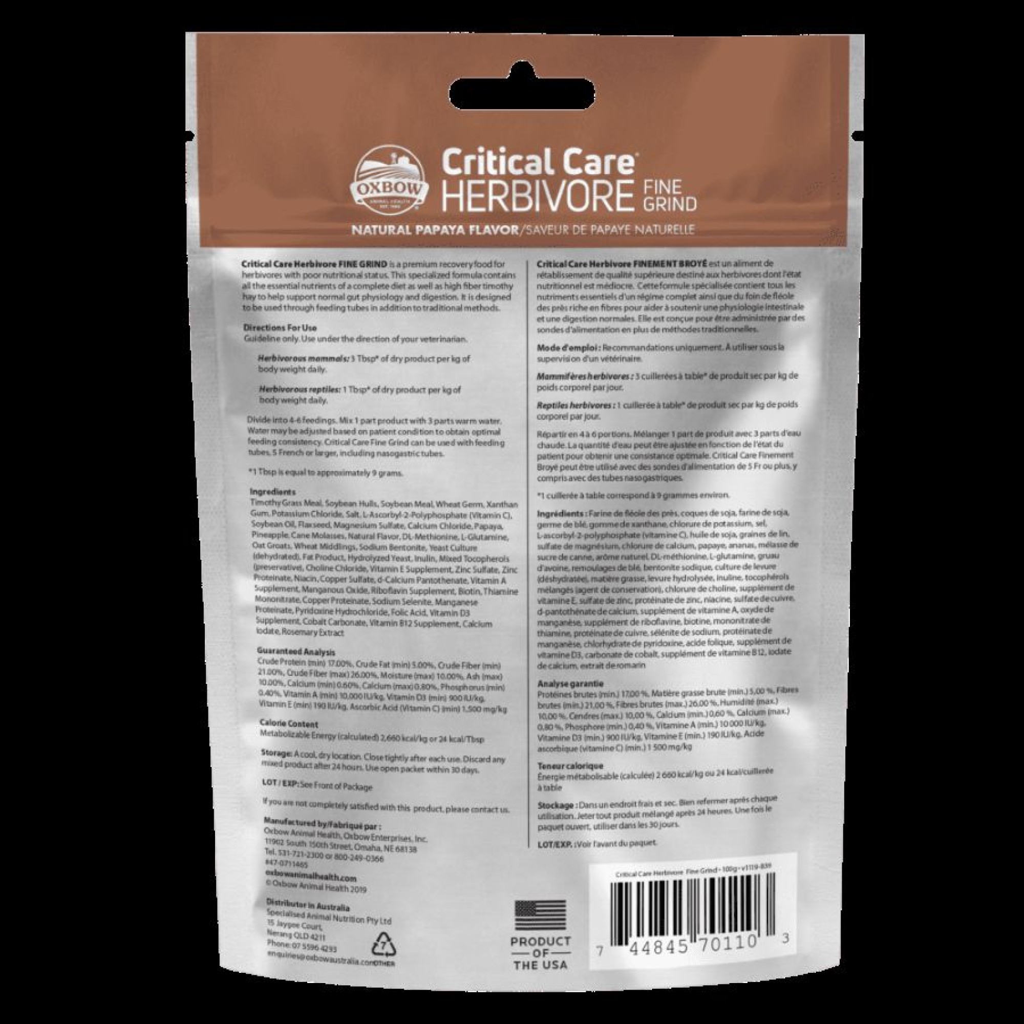 OXBOW HERBIVORE CRITICAL CARE FINE GRIND ΚΛΙΝΙΚΗ ΔΙΑΙΤΑ ΜΙΚΡΩΝ ΖΩΩΝ ΜΕ ΠΑΠΑΓΙΑ 100gr
