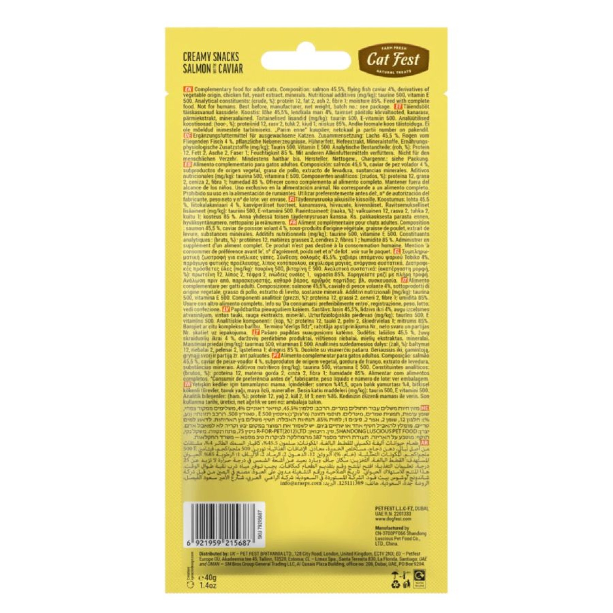 CAT FEST CREAMY SNACKS ADULT CAT ΜΕ ΓΑΛΟΠΟΥΛΑ ΚΑΙ ΧΑΒΙΑΡΙ 4pcs 40gr