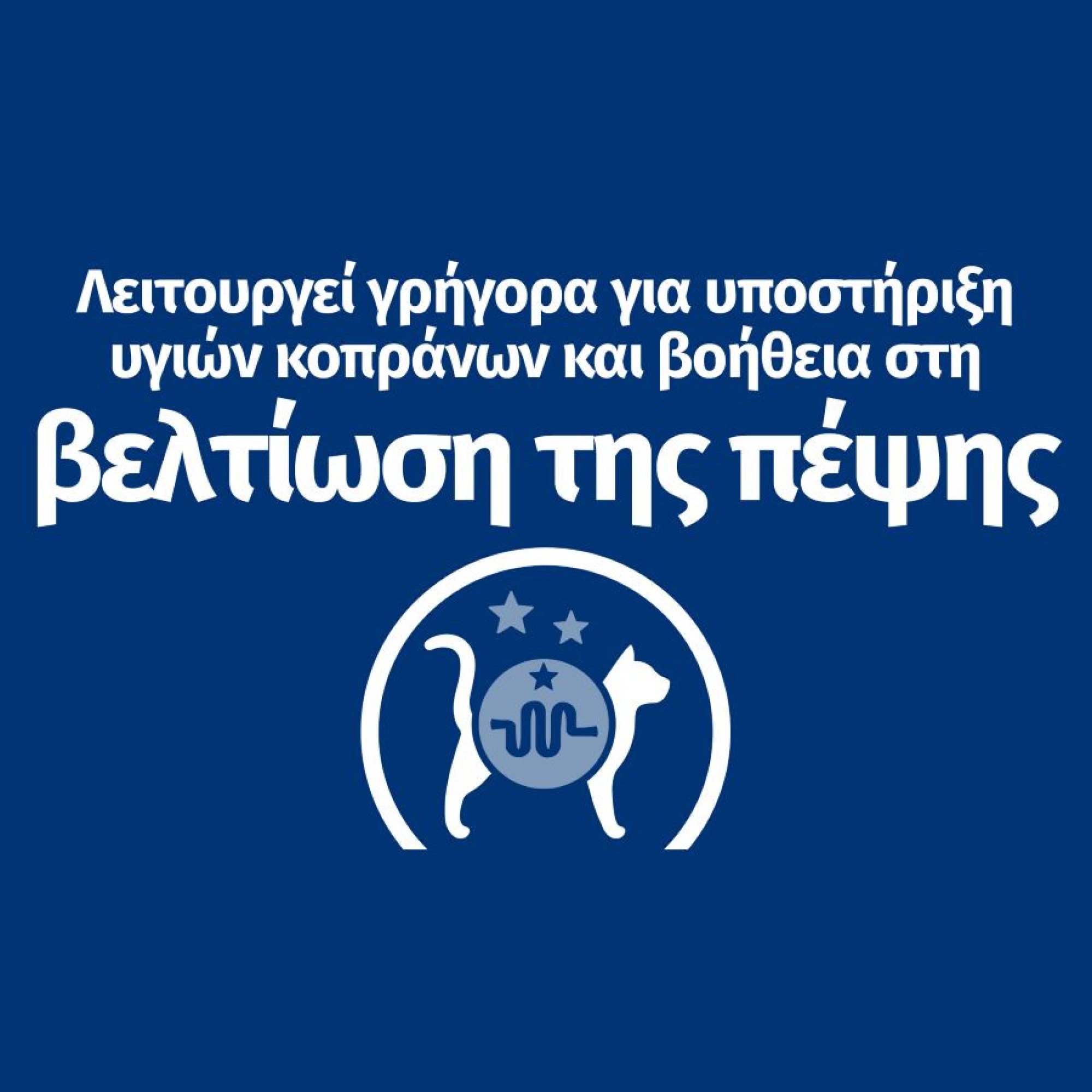 Πολύ εύπεπτη διατροφή που έχει αποδειχθεί κλινικά ότι τρέφει το μικροβίωμα του εντέρου και βοηθά στη μείωση των πεπτικών ενοχλήσεων. Ενισχυμένη με τεχνολογία συστατικών Hill's ActivBiome+, ένα αποκλειστικό μείγμα πρεβιοτικών που έχει αποδειχθεί κλινικά ότι τρέφει ταχύτατα το μικροβίωμα του εντέρου για υποστήριξη της πεπτικής υγείας και ευεξίας.