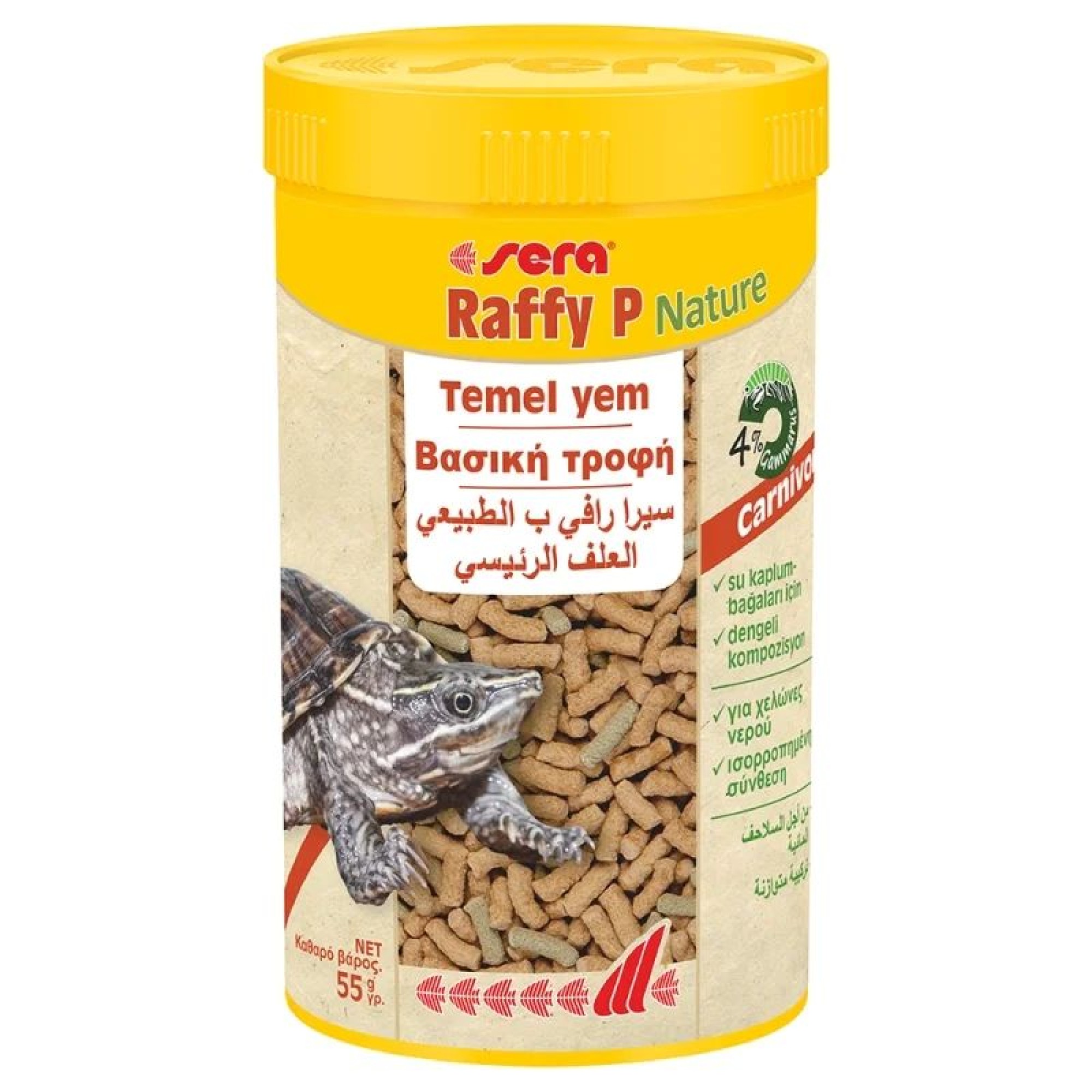 Η sera Raffy P Nature είναι η βασική τροφή για σαρκοφάγα ερπετά, όπως χελώνες νερού, η οποία αποτελείται από επιπλέοντες, προσεκτικά κατασκευασμένους κόκκους.