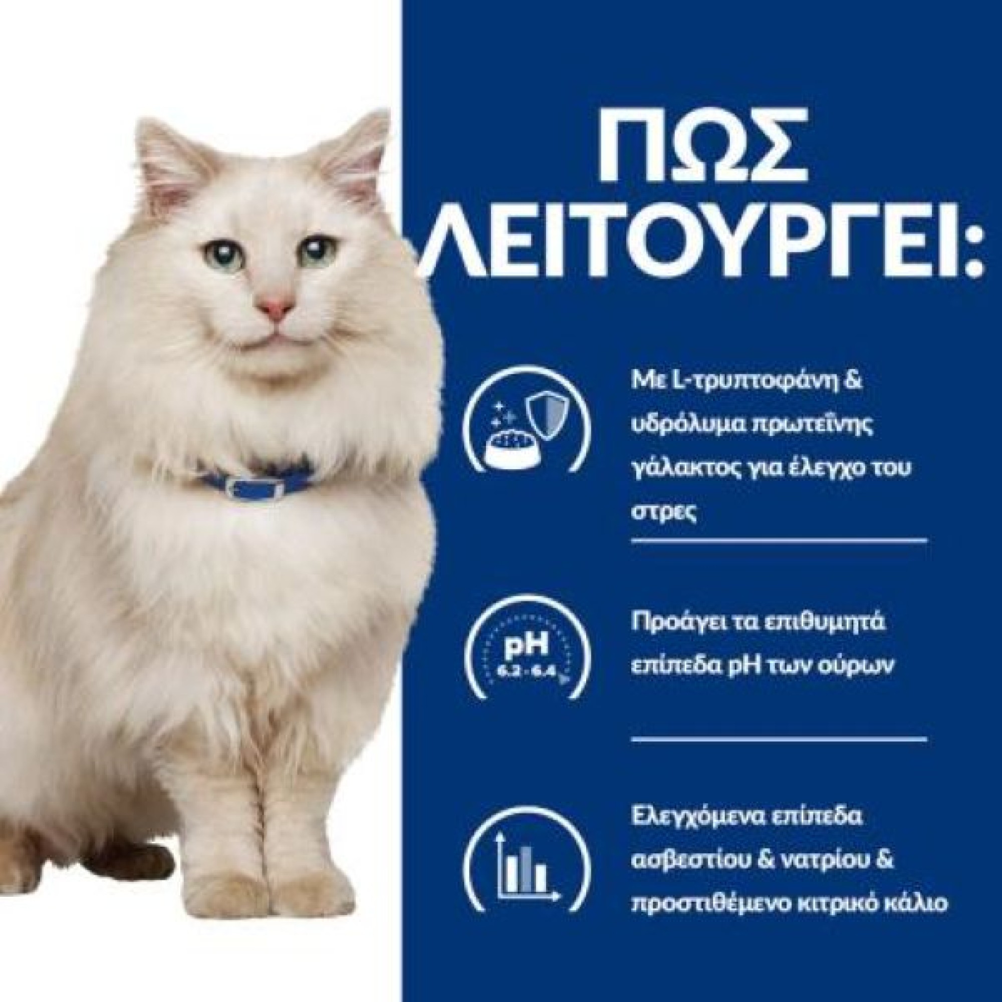 Πλήρης κλινική τροφή με κοτόπουλο, για ενήλικες γάτες με προβλήματα στο ουροποιητικό τους σύστημα και διαχείριση του στρες.