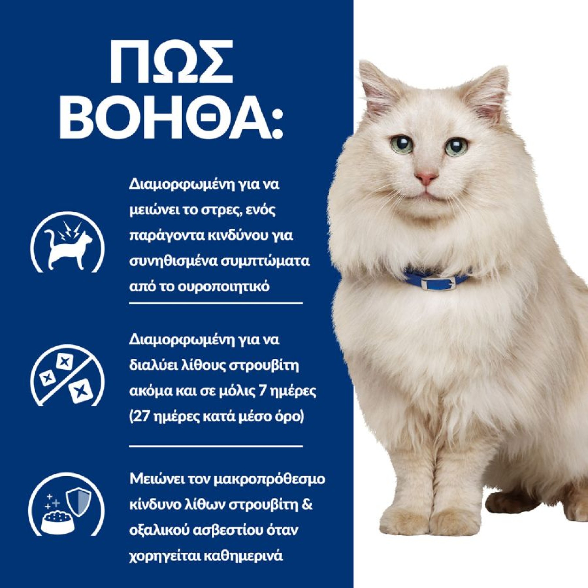 Οι διατροφολόγοι & οι κτηνίατροι της Hill's ανέπτυξαν τη διαιτητική διατροφή Prescription Diet c/d Multicare Stress με σύνθεση ειδικά σχεδιασμένη για υποστήριξη της υγείας του ουροποιητικού μιας γάτας και ταυτόχρονη διαχείριση του στρες. Μάλιστα η c/d Multicare είναι διατροφή που έχει δοκιμαστεί κλινικά για τη μείωση της επανεμφάνισης των πιο συχνών συμπτωμάτων του ουροποιητικού κατά 89%. Αυτή η ξηρή τροφή παρασκευάζεται με κοτόπουλο και έχει ακαταμάχητη γεύση που η γάτα σας θα λατρέψει.